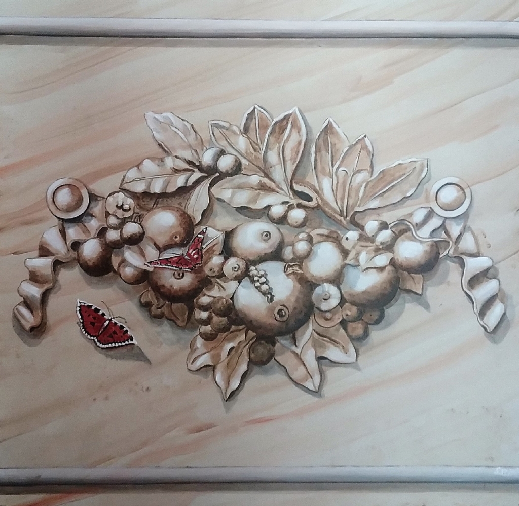 TROMPE L’OEIL – ILLUSIONSMALEREI – / WANDMALEREI / Mural Painting » klein_Grisaille m Schmetterlinge